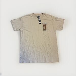 Riot Society Mens's Crew Neck Tee Shirt Beige With Teddy Bear Graphic L NWT