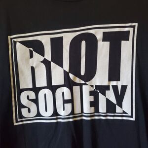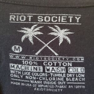 Fast ship. This is a black short sleeve T-shirt with a Riot Society graphic logo, made of cotton material that is machine washable. It has a regular fit and is available in size M, featuring a crew neck and solid pattern. The T-shirt is perfect for all seasons and has accents of the Riot Society logo. The shirt is not vintage and was made in the United States. It is a great addition to any men's clothing collection and is part of the T-shirts category on ebay.