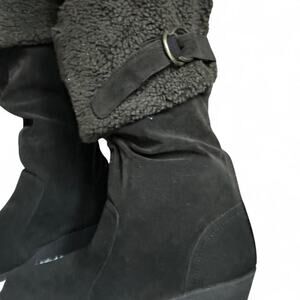 Riot! By RAMPAGE Andrea Brown suede wedge boots with faux fur trim and buckle