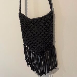 Rip Curl Black Macrame Crossbody Boho festival purse 8"x 10"
