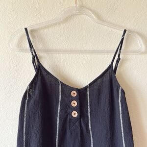 Stylish black mini dress. Features button details. Perfect for casual outings.
