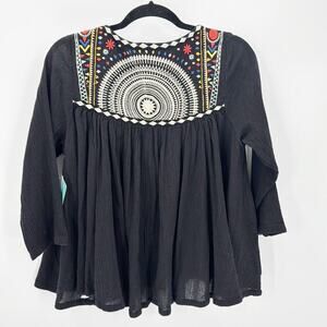 Rip Curl Fantasy Cardigan black gauze material embroidered open front size L