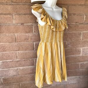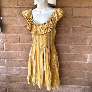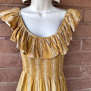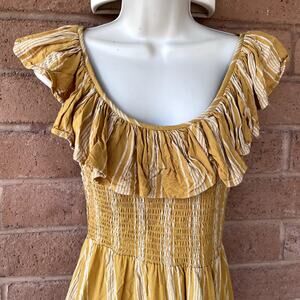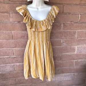 Rip Curl Fiesta Horizontal Stripe Smocked Dress Yellow Ruffle Collar Womens M
