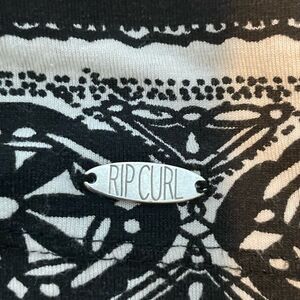 Rip Curl Floral & Striped Peasant Top Black White Print M