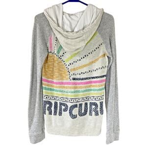 Rip Curl Gray Oatmeal Lightweight Full Zip Sweatshirt Boho Aztec Summer Hoodie