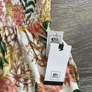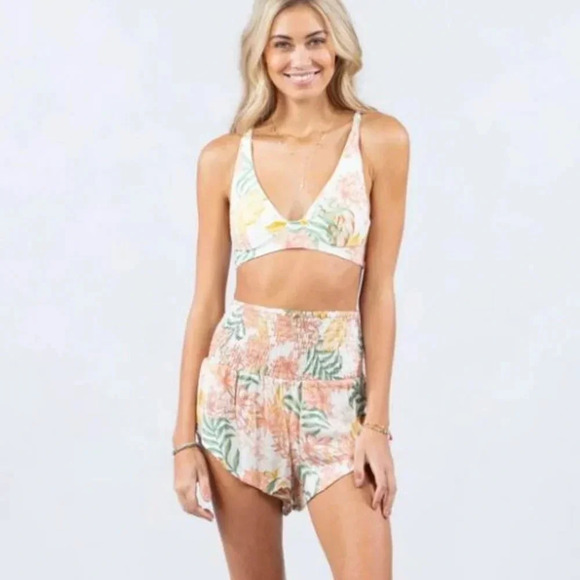 The perfect pull-on, over a swimsuit or paired with a cute T-shirt, Rip Curl's La Bonita beach shorts in a crinkly floral print feature a smocked waistband and a slanted hemline.