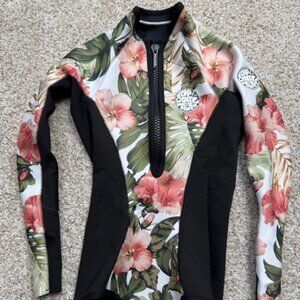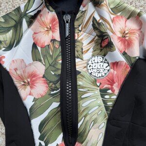 Rip Curl Long Sleeve Women's Wet Suit Black with Hibiscus Flowers Size 6
