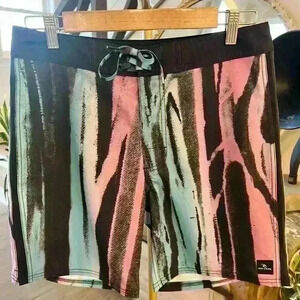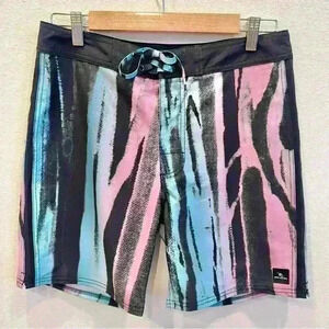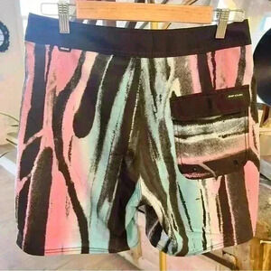 Good condition. Hit the sand or surf the waves in these laid-back board shorts fitted with handy pockets and cut from a blend of comfortable stretch fabric. Inspired by the psychedelic tints and swirls of resin art, the Mirage Resin is an epic board short made for high performance. Featuring lightweight Mirage Core recycled fabric with quick-dry properties for post-surf comfort.