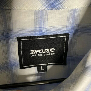 Rip Curl Mens short sleeve button down light blue white plaid size large L