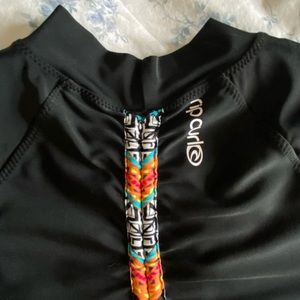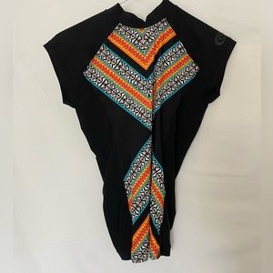 Worn once. New Rip Curl women's rash guard with an adjustable back detail. Colorful pattern on the front.