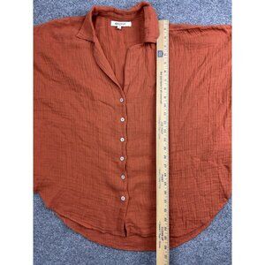 Rip Curl Shirt Womens Medium Rust Orange Gauze Cotton Button Front Dolman Blouse