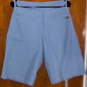 Sky blue flat front shorts. Perfect for casual outings. Comfortable fit.