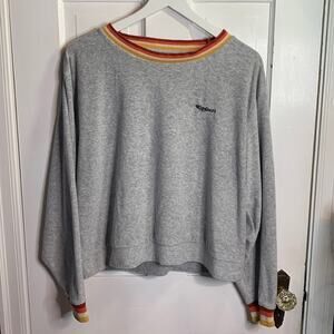 Every excursion should be comfy, and these women's fleece sweatshirt provides exactly that. Multicolor stripe cuffs and crew neck. Embroidered logo on left chest. Very good condition!