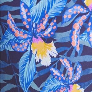 Excellent preowned condition. Does not include size tag. Best guess is size small - please see measurements. Approximately 27 inches long, 13 inches across waist. The rip curl metal brand tag on the back is tied only to one side (other side came loose). Stylish one-piece swimsuit with a vibrant floral pattern. Features shades of blue and purple with yellow accents.