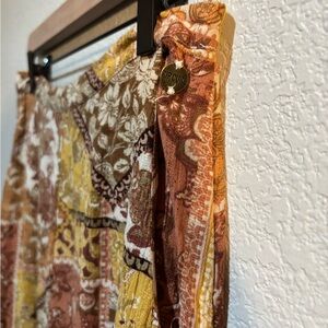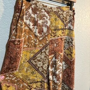 Vibrant bohemian patchwork maxi skirt. Features earthy tones and intricate patterns. Perfect for a casual day out.
