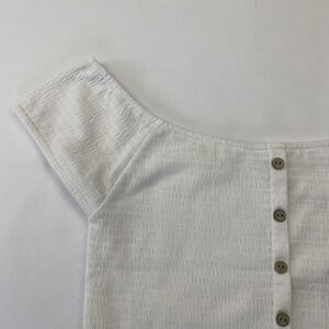 Rip Curl White Smocked Crop Top Sz S Faux Button Front Off The Shoulder Sz S