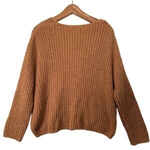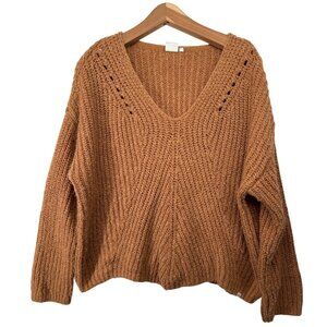 Rip Curl Womens Sweater Sz M Caramel V-Neck Chunky Ribbed Knit Beachy Outdoorsy