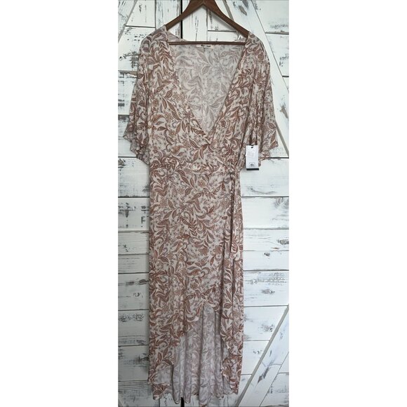 Rip Curl Wrap Maxi Dress Women’s Sz L Paisley Floral Apricot Peach Color New