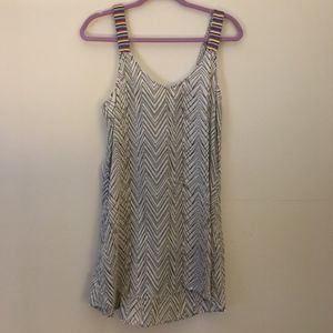 white and black dress with zig zagged design. has rainbow/colorful straps and back detailing. like new. size XS