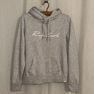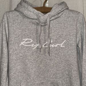 Rip Curl XS Silver Gray White Logo Fleece Inner Front Pocket Hoodie Sweatshirt