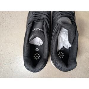Brand New, never worn. We bought several sizes and didn't get to this pair. These are probably better as a rec league pair or a backup pair of cleats, rather than a heavy use pair. Or use with a supportive insole.