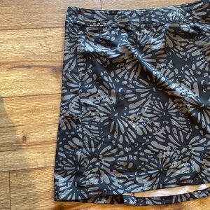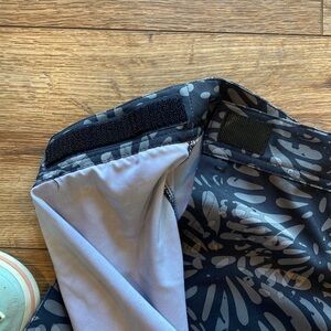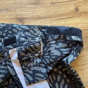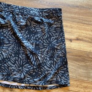 RipSkirt Hawaii wrap skirt featuring a black and gray floral pattern. RipSkirts are known for their versatility and are made from a soft, water-shedding fabric that is wrinkle-free and quick-drying. Key features of RipSkirts include: