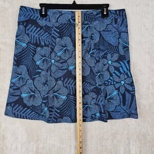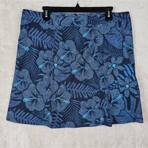 Wrap skirt that secures itself. In a blue tropical hibiscus print. In excellent pre owned condition.