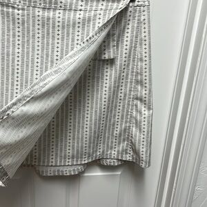 Size XL, excellent used condition, white with gray line designs, Velcro closure, small inner jet pocket, quick drying fabric