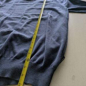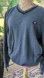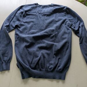 Stay stylish and comfortable with this blue V-neck surfer sweater. Perfect for any occasion, this sweater offers a classic look with a modern touch. Gently worn, non smoking size XL (approx 20" armpit to armpit approx 27" shoulder to hem)
