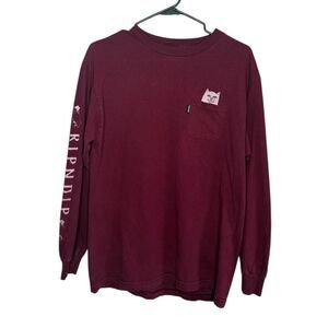 RipNDip Lord Nermal Middle Finger Cat Long Sleeve Tshirt -M Maroon Prayer Hands maroon burgundy great shape smoke free dog friendly home