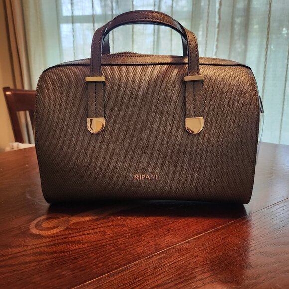 Italian leather pewter satchel with original tags and authenticity paper.