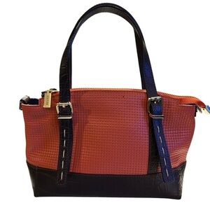Ripani Brown Croc Embossed and Orange Satchel Bag Made in Italy