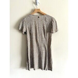 The Ripcurl Dress is a stylish and trendy option for women looking for a versatile piece for the beach, parties, or casual wear. The brown polka dot pattern with short flared sleeves and a v-neckline gives it a boho and beachy vibe. Made from polyester and rayon materials sourced from India, this short shift sundress in size M is perfect for the summer, spring, and fall seasons. The button front closure adds a unique touch to this fashionable dress from the brand RIP CURL.