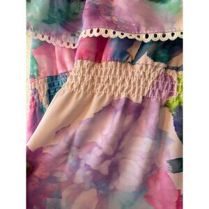 Ripe Maternity Gemma Watercolor Floral Dress Off-Shoulder Ruffle Hem S