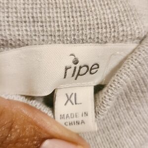 This sleeveless layered knit nursing dress by Ripe Maternity features a chic high neck and cross front layered design, which lifts easily for discreet nursing access. Size XL. Fully fashion knit and round; dress is semi fitted. Fabric blend of viscose, cotton, and nylon. Excellent pre-owned condition; no flaws.
