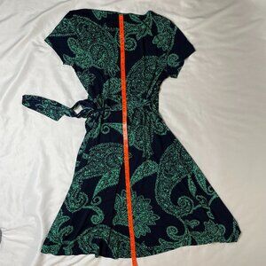 Ripe Maternity Wrap Dress Navy Green Paisley Short Sleeves Size M