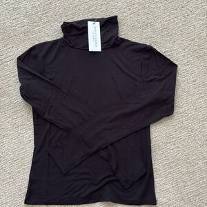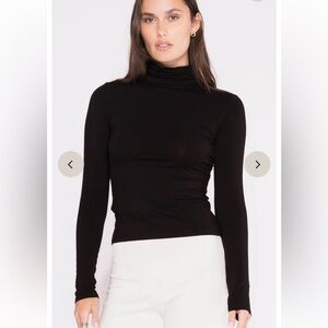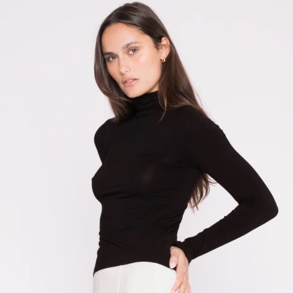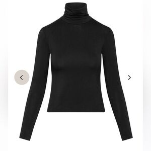 Elevate your wardrobe with this sleek black turtleneck top. Perfect for any occasion, it offers a timeless style and comfortable fit.