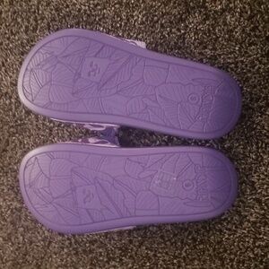 Fun purple slide sandals with a playful cat design. Perfect for casual wear.
