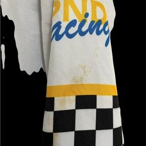 Racing-style jacket, small stain on sleeve. Smoke-free home.