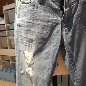 These LA Based Jean Brand Company Sinclair Fabulous Pair of Low Rise Body Hugging Bootcut Jeans in a Really Pretty Distressed light Blue Wash. These look fantastic on - the front is slightly lighter and is a lovely contrast with the back/sides. Generous stretch factor - comfortable and flattering at every angle!
