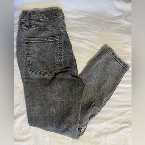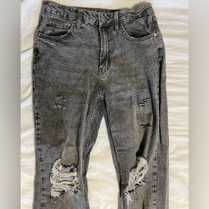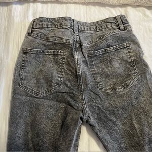 A black washed mom Jean that is ripped and frayed bottoms. High rise. Super cute and trendy. Also very comfortable they just dont fit anymore.