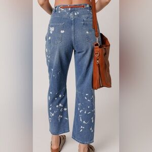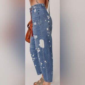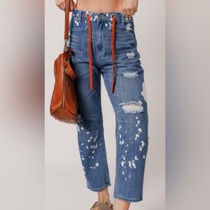 Ripped Splattered Rope Waist Cropped Jeans