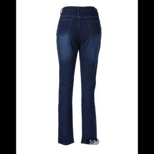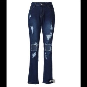 Ripped cutout skinny jeans. Great quality rips are well placed and hug your curves. I won them and love them. Dark blue