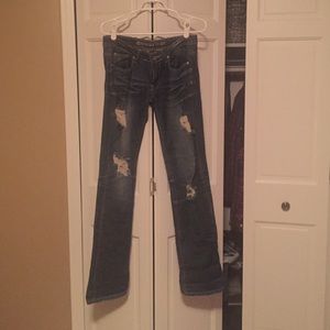 Fitted lightweight stretchy denim with four rips in the front. Straight leg