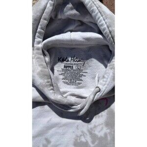 The Ripple Junction Keith Haring Pop Art Tie Dye Hoodie in size Large is a stylish and unique pullover hoodie designed for men. Featuring a white color with a pop art theme inspired by artist Keith Haring, this hoodie is sure to make a statement. Made by the brand Ripple Junction, this regular fit hoodie is perfect for those looking for a blend of art and comfort in their activewear wardrobe.