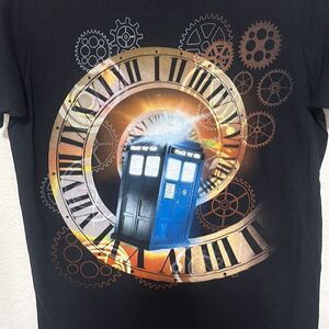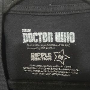 Made from 100% cotton, this shirt is not only comfortable but also stylish. The black color adds a touch of mystery and sophistication to your look. With a size of Medium, this shirt is perfect for fans of Doctor Who who want to showcase their passion in a casual yet fashionable way. Whether you're running errands or hanging out with friends, this Doctor Who graphic tee is a must-have addition to your wardrobe. Get yours today and make a statement wherever you go!