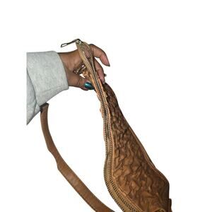 This beautiful brown bag is perfect for any woman on the go. The rippled design adds a unique touch to the bag, while the zipper closure ensures that all your belongings stay safe and secure. The accents of the zipper add a stylish touch to the bag, making it a great accessory for any outfit.