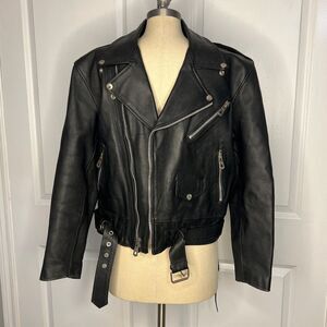 Ripples 90's Vintage Black Leather Moto Jacket Size 42