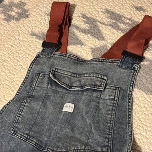Ripton overalls with maroon straps. Have some stretch to them. Straps are stretched a bit, can be used as is or replaced.