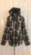 Ripzone Core coat in a black and white plaid with a blue and black check fleece interior lining. This coat features CORE 5000mm technology to keep you warm while skiing, snowboarding or snow mobiling. There is zippered underarm venting (photo 12) and two interior pockets (photo 7). The exterior of the coat has two chest pockets and two hand pockets. The hood is detachable via a zipper and has a slight bill to it to shield your eyes from the sun. Adjustable Velcro cuffs (photo 13).